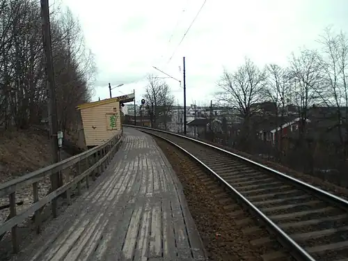 Nydalen station (Norwegian: Nydalen holdeplass) is a railway station on the Gjøvik Line in Oslo, Norway. The station was built opened in 1946, and is located between Grefsen and Kjelsås. Like most of the local Oslo stations on the Gjøvik Line, Nydalen is a small station. It is unstaffed, has only a single wooden platform, and is served only by commuter trains. Close by, but not in connection, is a subway station with the same name, Nydalen.
