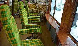| Seating arrangements | Car No.1: Eco seats (56 seats): Two-person seats / four-person seats / free viewing seats / etc. Car No. 2: Reserved seats for people with disabilities, café room (37 seats): two-person seats / four-person seats / one-person seat / café room, table seats Car No.3: Family seats (56 seats) – Family seats / couple room / family room / etc. Car No.4: Eco seats (56) – Two-person seats / four-person seats / free viewing seats |