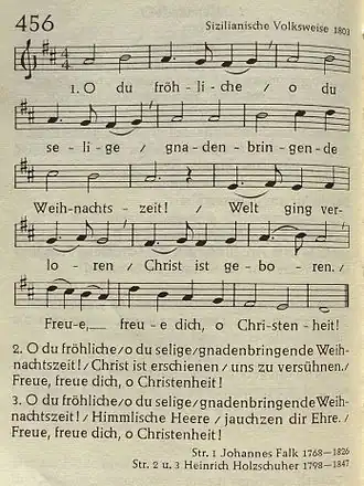 - ^ Falk, Johannes Daniel (30 January 1817). "O du fröhliche". Zweiter Bericht der Gesellschaft der Freunde in der Noth. Weimar.