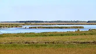 More than 280 species of birds have been reported from the area, many of them during the spring and fall migrations.[7] Numbers of staging waterfowl peak in early October when more than 300,000 ducks and geese may be present.[8] Other species gathering in large numbers in the fall include Yellow-headed blackbird, Red-winged blackbird, and Bank swallow.[8]