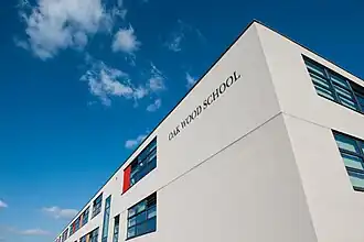 The old school was renamed on 20 July 2018 and was relaunched as co-educational under the name Oak Wood School.[2] The original closing date was put as 2016, though this was delayed in order to allow building works to be completed on the site. The old school buildings were used until the new facility was opened, at which point the old buildings were demolished, with the same happening to Swakeleys School's buildings. The new building works for both Abbotsfield and Swakeleys were funded by the London Borough of Hillingdon. The reason cited for Abbotsfield's re-opening as co-ed was due to the school's low admission rates and performance.[3]
