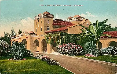 Oakland station was a major intercity railway station which was located in Emeryville, California, intended to serve the nearby cities of Oakland and San Francisco. The station was located at the corner of 40th Street and San Pablo Avenue,[1] adjacent to a Key System interurban stop.[2] It was built by the Atchison, Topeka and Santa Fe Railway when their Valley Division was extended from Richmond. Passengers would transfer to transbay buses here, connecting them to San Francisco.