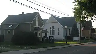 Oaklandon Historic District is a national historic district located at Indianapolis, Indiana. It encompasses 38 contributing buildings in the mid-19th century settlement of Oaklandon. The district developed between about 1908 and 1941, and includes representative examples of Classical Revival, Late Gothic Revival, and Bungalow / American Craftsman style architecture. Notable buildings include the Oaklandon Christian Church (1908), Oaklandon Universalist Church (1921), and Dr. Charles J. Kneer Residence (1923).[2]