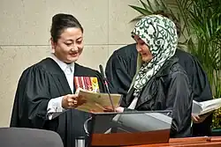 The Federal Court ruled on 11 February 2015 in Ishaq's favour. Judge Keith Boswell opined the regulations require citizenship judges administer the oath "allowing the greatest possible freedom in the religious solemnization or the solemn affirmation thereof" and asked how that could be possible if a rule requires candidates to "violate or renounce a basic tenet of their religion". Prime Minister Stephen Harper reacted by stating the following day that the Crown-in-Council would appeal the judgement.[69] However, the Federal Court of Appeal upheld the earlier ruling[70] and refused an application for a stay of proceedings,[71] prompting the Conservative Party to, during the ongoing federal election (in which the niqāb matter became a 'wedge' issue) craft a press release indicating the Cabinet would introduce to parliament "in the days ahead" legislation to ban niqāb at citizenship ceremonies.[70] Ishaq recited the oath privately before a female citizenship judge and became a Canadian citizen on 9 October 2015,[72] though the government pressed the issue to the supreme court.[73] Following the election won by the Liberal Party, the new Cabinet withdrew the challenge.[74][75]