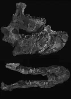 The suite of features that distinguish it from other anthracobunids are broad lower molars, short lower m3, and a fairly long angular process of the mandible, but not as long as in Anthracobune.[1]