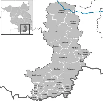 SaxonyCottbusDahme-SpreewaldElbe-ElsterSpree-NeißeTeltow-FlämingAltdöbernBronkowCalauFrauendorfGroßkmehlenGroßräschenGrünewaldGutebornHermsdorfHohenbockaKroppenLauchhammerLindenauLübbenauLuckaitztalNeupetershainNeu-SeelandOrtrandRuhlandSchipkauSchwarzbachSchwarzheideSenftenbergTettauVetschau