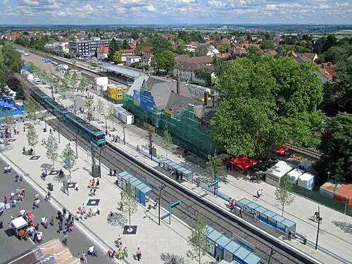 ![]() U-Bahn stop (bottom) and railway station (top) during Hessentag 2011 | |||||||||||||||||||||