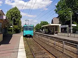 On 27 September 1970, the line via Oberursel and Bad Homburg to Friedrichsdorf was electrified.[5] In 1974 the Frankfurt Transport Authority (Frankfurter Verkehrsverbund, FVV) was established with an S-Bahn-like network connecting Frankfurt Hauptbahnhof with Friedrichsdorf, with the route number of R5.[6] In 1978, this operation was redesignated as an S-Bahn and renumbered with its current designation of S5. Since the Taunusbahn became part of the FVV in 1993, trains have run on it to Frankfurt Hauptbahnhof, stopping in Oberursel, but not at Stierstadt or Weißkirchen.
