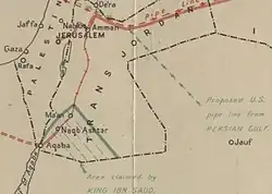 A January 12, 1940 memorandum prepared by the Eastern Department of the Foreign Office, entitled "Ibn Saud's claim to Akaba and Maan" discussed:[39]