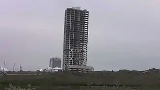 Ocean Tower SPI was an unfinished, 31-story residential skyscraper in South Padre Island, Cameron County, Texas, United States, that was imploded when it was deemed unsafe to remain standing. Construction was halted in May 2008 when cracks formed in the building's supporting columns, and investigations revealed that the core of the skyscraper had sunk by more than 14 inches (360 mm). Though the developers initially vowed to fix the problem, studies discovered that repairs would have been too expensive, and plans for its demolition were announced in September 2009. At the time of its controlled implosion in December 2009 the building weighed 55,000 short tons (50,000 t), and it was the tallest reinforced concrete structure to be demolished in that way. It was nicknamed "Faulty Towers" and "The Leaning Tower of South Padre Island".[1][2]