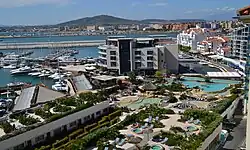 Ocean Village is a mixed-use marina, residential, business, and leisure development in Gibraltar, in the North end of the Iberian peninsula. The project features 316 residential apartments, over 250 marina berths and extensive business accommodation. Construction of the first phase of Ocean Village commenced in 2006, with the latest completed addition of the World Trade Center in 2017. The current recreational facilities within the overall complex include two casinos, numerous eateries, and bars and the Sunborn Yacht Hotel. Due for completion in 2019 are a further 244 apartments with future plans to incorporate additional superyacht berthing and a waterside villa complex. The marina is paved in a Portuguese pavement style.