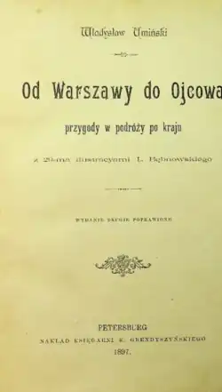 Od Warszawy do Ojcowa. Przygody w podróży po kraju (From Warsaw to Ojców: Adventures on a Journey Through the Country) is an adventure travel novel for young readers by Polish author Władysław Umiński, published in 1897. The plot of the novel follows a summer excursion of 4th-grade students from a Warsaw high school, traveling from Warsaw to the southern Polish village of Ojców.