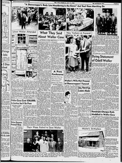 The testimony of Henry Davis and Oscar Davis's sons proved damning, and several witnesses also testified that they had heard Waller declare he would come home with his wheat or kill Oscar.[20] In an analysis of the transcript, Sherman proposes that the phrasing of these witnesses was so similar that they may have been coached by prosecutors, but the defense counsel did not pursue this possibility.[21] On September 27, 1940, after less than an hour's deliberation, the jury found Waller guilty of first degree murder and sentenced him to death, a verdict praised by the Virginia press covering the trial.[22] His execution was scheduled for December 27 of that year.[23]