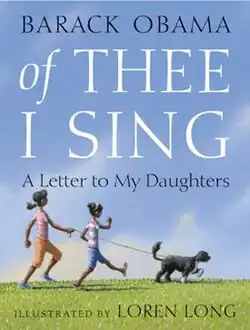 Of Thee I Sing: A Letter to My Daughters is a 2010 children's book by Barack Obama, with illustrations by Loren Long.[1] It is described by the publisher as a "tribute to thirteen groundbreaking Americans and the ideals that have shaped our nation."[2] The stories of thirteen Americans are told in the book: George Washington, Abraham Lincoln, Martin Luther King Jr., Neil Armstrong, Sitting Bull, Cesar Chavez, Billie Holiday, Maya Lin, Albert Einstein, Georgia O'Keeffe, Jackie Robinson, Helen Keller, and Jane Addams."[3]