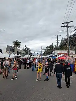 Off Sunset Festival is an annual kink, leather subculture, and alternative sexuality street fair in Los Angeles, California. The event has historically served as the conclusion to "Los Angeles Leather Pride" in March,[1] but beginning in 2025, has been moved to late April in favor of milder weather. The event, sometimes referred to simply as "Off Sunset", takes place on Santa Monica Boulevard in Silver Lake, just "off" Sunset Boulevard.[2] The event is considered by some to be the spiritual successor to the Sunset Junction Street Fair, which was last held in 2010.[3]