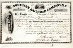 Stock certificate issued in 1849 near the founding of the Northern Railroad Company