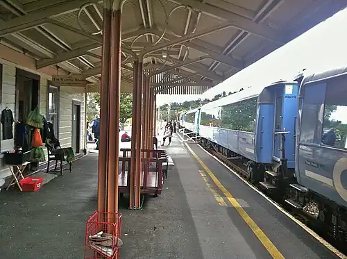 Ohakune railway station is a station on the North Island Main Trunk (NIMT), which serves the town of Ohakune in the Manawatū-Whanganui region of New Zealand. It is served by KiwiRail's Northern Explorer long distance train between Wellington and Auckland. It was called Ohakune Junction from 10 August 1926 until Raetihi Branch closed in 1968, to avoid confusion with Ohakune Town station on that branch.[3] It was the second highest operating railway station in New Zealand, after National Park.[4]