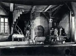 The theatre's first production was a Hebrew adaptation of stories by the Yiddish writer I. L. Peretz. Peretz's Parties depicted the decadence of life in the Diaspora, compared to new Jewish life in the Land of Israel.[2] In 1926 it hosted the Modern Artists' exhibition, the first show of modern art in mandatory Palestine. In 1927, it staged Dayagim ("Fishermen"), a socialist play about the exploitation of fishermen by entrepreneurs.[3]