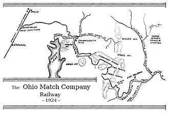 ![]() Map of the Ohio Match Railway from 1924 | |