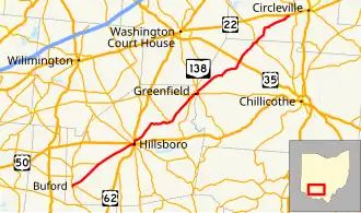 State Route 138 (SR 138) is an east–west state highway in the southwestern portion of the U.S. state of Ohio. Its west terminus is at its intersection with SR 134 in Buford and its eastern terminus is at its intersection with US 22 east of Williamsport.[2]