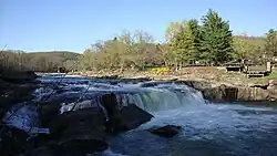 - Ohiopyle Falls is a 20-foot (6.1 m) waterfall that spans the Youghiogheny River and is surrounded by the Falls Day Use Area located at the center of the park.[4]