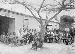 The school was founded in 1901[2] as the Zulu Christian Industrial School by John Langalibalele Dube and his first wife, Nokutela.[3] The school, also known as the Ohlange Native Industrial Institute,[2] was the first educational institution in South Africa to be founded by a black person. The land for the school was donated by Chief Mqhawe of the AmaQadi.[2] John Dube had been in contact with Booker T. Washington and modelled the school after the Tuskegee University in America. As a result, the Zulu Christian Industrial Institute laid emphasis on developing self-reliance in its students. In 1901, the school was renamed the Ohlange Institute. It was called "Ohlange" by Dube based on the word "uhlanga", which means the point of new growth in a plant or an ancestor for a descended family.[4]