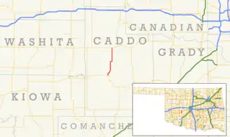 - ^ a b Oklahoma Department of Transportation (2010–2011). Control Section Maps: Caddo County (PDF) (Map) (2010–2011 ed.). Scale not given. Oklahoma City: Oklahoma Department of Transportation. Retrieved November 12, 2012.