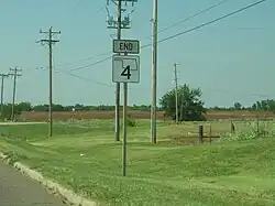 Just after crossing SH-3, there is a standard distance sign listing Piedmont and "END OF ROUTE", giving the distance to the terminus of SH-4. This is a relative rarity on Oklahoma highways.