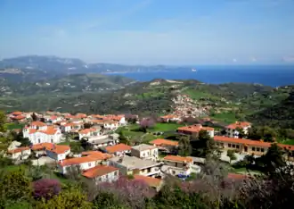 Oktonia is a hillside village found in the east-central area of Euboea Island, belonging to the municipality of Kymi-Aliveri, Greece. Located near the lower side of the Gulf of Kymi, the village is composed of four settlements: Alonia, Panochori (the upper village), Katochori (the lower village) and Panagia, covering a large area. It is 145 km from Athens, a distance covered in about 2.5 hours by car. According to the census of 2021, the community of Oktonia, which also includes the villages Agios Merkourios and Mourteri, has 519 permanent inhabitants.[1]