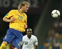 On 21 August 2007, he scored a hat trick (including two penalties) for Sweden U21 against Wales U21 in a 4–3 friendly defeat.[50] He was a member of the U-21 national team at the 2009 European Championship in Sweden and scored three times in the competition against Italy U21,[51] Serbia U21,[52] and a superb freekick against England U21 which contributed to a comeback from 3–0 down to 3–3 with Toivonen scoring the second goal.[53]