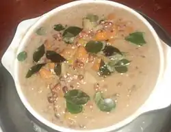 Olan (pronounced [oːlan]) is a dish that is part of the Kerala cuisine of the state of Kerala in South India.[1] It is a light and subtle-flavored dish prepared from white gourd or ash-gourd, and black-eyed peas, coconut milk and ginger seasoned with coconut oil.[2] It is usually served as part of a Sadhya.[2]
