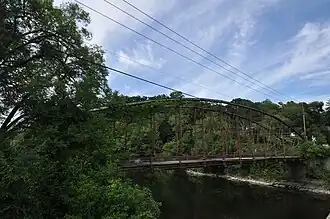 The Old Boardman Bridge, formerly Boardman Bridge, is a historic lenticular truss bridge, which used to carry Boardman Road across the Housatonic River in New Milford, Connecticut. Built from 1887 to 1888 out of wrought iron, it is one of the state's three surviving examples of this bridge type, and along with Lover's Leap Bridge, one of two in New Milford. It was listed on the National Register of Historic Places in 1976.[1] The bridge was closed to vehicles in 1984 and to pedestrians in 1985; however, the Town of New Milford is seeking to restore it and reopen it to pedestrian traffic.[2]