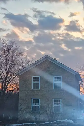 It is a two-story building constructed of limestone rubble, with massive blocks of dressed limestone serving as quoins and lintels. It has a central chimney and a gable roof. Its interior dimensions are 22 feet (6.7 m) by 36 feet (11 m). The school was converted into a one-family house in the 1890s and into a multiple unit residence in the 1950s.[2]