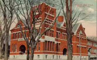 The Old Rockville High School and East School are a pair of historic former school buildings at School and Park Streets in the Rockville section of Vernon, Connecticut. Built in 1892 and 1870 respectively, the two buildings are good examples of late 19th-century school architecture, and the former high school is a particularly good example of Richardsonian Romanesque design. The buildings were listed on the National Register of Historic Places in 1981.[1] The high school now houses school administration offices, and the East School houses court offices.