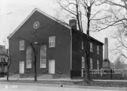 The Baptist congregation in Hopewell was organized in 1715, led by Johnathan Stout.[5] In 1747, John Hart donated land for the church and cemetery.[6] The first church building was erected from 1747 to 1748. Its first minister was Reverend Isaac Eaton, who served until his death in 1772.[5] In 1822, the current Federal architecture red brick church was built on the site of the first church.[7] In 1936, it was documented by the Historic American Buildings Survey (HABS).[8] In 1974, there were no surviving members of the congregation and the property changed from a religious organization to a private foundation and museum.[9] In February 2023, Hopewell Old School Baptist Meetinghouse, Inc., was registered as a New Jersey public charity to preserve the property.[10]