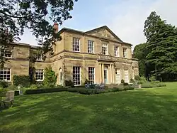The country house was built in the early 19th century for Thomas Staveley, replacing an earlier building. The gardens were laid out at the same time, and altered in the late 20th century with guidance from Brenda Colvin.[1] The main door of the house was replaced in the 20th century. It was grade II listed, along with the attached garden wall, in 1952.[2] The stables have been converted into an art gallery and studio.[3]