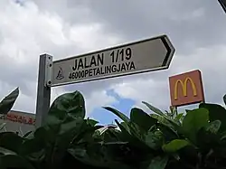Petaling Jaya is divided into numbered sections (also known as seksyen), which can be denoted with just S (eastern PJ), SS (central and western PJ), PJU (northern PJ), and PJS (southern PJ). The northern chunk is also known as Damansara.