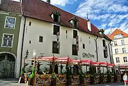 The restaurant Olde Hansa with 300 customer places was opened in the building in 1997, becoming one of the most famous tourist destinations in Tallinn. The style of the restaurant, including the food and drink, the cutlery and the dress of the staff in the three-floor restaurant were modelled after the Hanseatic League. Original recipes of the Hanseatic time were used, without ingredients introduced to Europe in the 15th century or later. For example the recipes do not use any potato or maize. Instead there are many game dishes, including elk, bear and pheasant. The drinks include house beer and pepper schnapps.[1] There is a furnace room on the third floor.