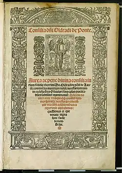 Oldradus de Ponte (died 1335) was an Italian jurist born in Lodi, active in the Roman curia in the early fourteenth century. Previously he had taught at the University of Padua. According to Joseph Canning[1] he was an authority in both canon law and civil law, and his consilia (legal opinions) are the earliest surviving ones.