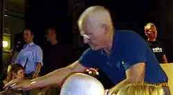 Nydahl's "self-identification and legitimization as a Western Karma bKa' brgyud lay teacher" is an important part of a "continual hagiographical tradition he and his inner circle are writing and rewriting".[29] These hagiographies contribute to the cohesion of the Diamond Way, and "this claim of normative transmission is emphasized in almost every public lecture given by Nydahl himself."[30] According to Scherer, Nydahl presents himself as a lay-siddhi yogi, with a "polarizing style".[31] The yogi-lay element is presented by Nydahl as a legitimization of his position as a teacher within the Karma Kagyu, and "addresses Nydahl's unconventional spiritual formation and education outside the prescribed curriculum of three-year retreats."[32][note 5]