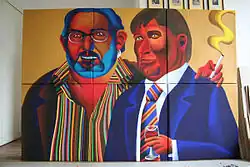 Oleg Khvostov got acquainted with Marat Guelman after the "Memorial of Leaders" exhibition, signed a contract with his Gallery and moved to Moscow.[18] During his collaboration with the Guelman Gallery Khvostov took part in the "Piterskiye" project at the "Art Moscow" fair in 2005 and got a grant from the Marat Guelman Contemporary Art Funding Agency.[19][20] In a year spent in his Moscow studio the artist completed two projects: a grand-scale model of the Moscow Kremlin made of carton boxes and an artistic revision of the "Venus of Urbino" by Tiziano, also painted on the carton boxes and potentially divided into blocks. However, the exhibition in Marat Guelman's Gallery wasn't held and in 2006 Oleg came back to Saint Petersburg.[21]