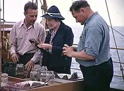 2. ^ According to John L. Mohr, they sometimes worked 4 a.m. until midnight. Professor Light encouraged them to spend their free time on the beach observing the animals, but Mohr notes with amusement that they never had any free time due to the long hours of work and study.[5]