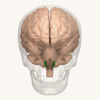 In humans, it measures about 1.25 cm in length, and between its upper end and the pons there is a slight depression to which the roots of the facial nerve are attached.