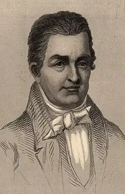 Oliver Evans was born in Newport, Delaware on September 13, 1755, to Charles and Ann Stalcop Evans. His father was a cordwainer by trade, though he purchased a large farm to the north of Newport on the Red Clay Creek and moved his family there when Oliver was still in his infancy.[1] Oliver was the fifth of twelve children; he had four sisters and seven brothers.[2] Little else is known of Evans's early life, and surviving records provide few details as to his formative years. The nature and location of his early education have not been preserved, however, his literacy was demonstrably strong from a young age, both as a writer and an avid reader on technical subjects.[3] Aged 17, Evans was apprenticed to a wheelwright and wagon-maker in Newport. An anecdote from the period recalls that his master, an illiterate and extremely frugal man, forbade Evans the use of candles to illuminate his reading in the evenings. Evans found another way by collecting scraps and shavings of wood from his work during the day to serve as fuel for small fires.[4] The Revolutionary War began when Evans was 19. He enlisted in a Delaware militia company but saw no active service during the war.[3]