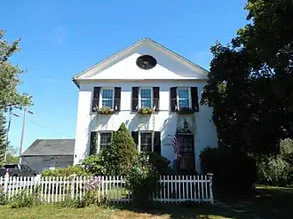 The Oliver W. Mills House is located in southern Windsor, on the east side of Deerfield Road at its northeast corner with Logans Way. It is a 2+1⁄2-story brick building, with a front-facing gable roof and two interior brick chimneys. The gable is fully pedimented, with a slightly oval fan in the center. The main facade is three bays wide, with the entrance in the rightmost bay, set in a round-arch opening with transom window. Windows are set in rectangular openings, with brownstone sills and headers of soldier bricks in a splayed layout. A two-story brick ell, apparently contemporary to the main part of the house, extends to the rear. The interior layout has three rooms in the main block along with the entry hall, and the kitchen in the ell. The stair and front parlor feature the most elaborate interior woodwork, which is otherwise relatively modest. In some rooms, the original wide floor boards have been overlaid with modern flooring.[2]