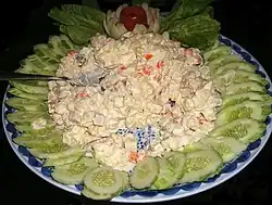 Olivier salad (Russian: салат Оливье, romanized: salat Olivye, pronunciation), also known as Russian salad,[1][2] is a traditional salad dish in Russian cuisine.[2] Its creation is generally attributed to Lucien Olivier.[3][4]