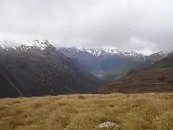 The Olivine River (Te Motutūroro) is a river in northern Fiordland, New Zealand, located in Mount Aspiring National Park. It rises north of the Cow Saddle and flows north, then north-west over Olivine Falls to become a tributary of the Pyke River near Olivine Hut.[1] The Five Passes hiking (tramping) trail passes through the upper river near Cow Saddle. The Dun Mountain Ophiolite Belt which is rich in the mineral olivine outcrops extensively in the Olivine River and its tributaries.