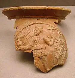 In ancient Roman religion, ollae (plural) have ritual use and significance, including as cinerary urns.[5] In the study of Gallo-Roman art and culture, an olla is the small pot carried by Sucellus, by the mallet god often identified with him, or by other gods.