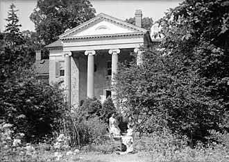 Olney, originally patented as Prospect, is a historic home and farm complex located at Joppa, Harford County, Maryland. It is a 264-acre (1.07 km2) working pony farm with a collection of 15 structures ranging in style, use, and elegance. The main building on the property is a 2+12-story brick house dating to 1810, generally called "the mansion." The house was evolved into a museum of Maryland architecture, with salvaged features from demolished buildings in Baltimore and Philadelphia. These include paneling from the Isaac Van Bibber house in Fells Point, Baltimore dating to 1815; the marble Ionic portico from William Small's Baltimore Athenaeum from 1830; and a marble bas-relief plaque designed by Pierre L'Enfant for Robert Morris's great 1795 house in Philadelphia. Also on the property is an early-18th-century, 2+12-story stone dwelling and a variety of still-functioning farm structures that in themselves range in style from simple stone stables and frame hay barns to an unusual two-story brick blacksmith's shop. In addition, the 1914 Union Chapel School, was moved onto the property in 1980 and re-outfitted as St. Alban's Anglican Church. The property was developed by J. Alexis Shriver (1872–1951), a man prominent in local and state historical and agricultural matters who lived at Olney from 1890 until his death.[2]