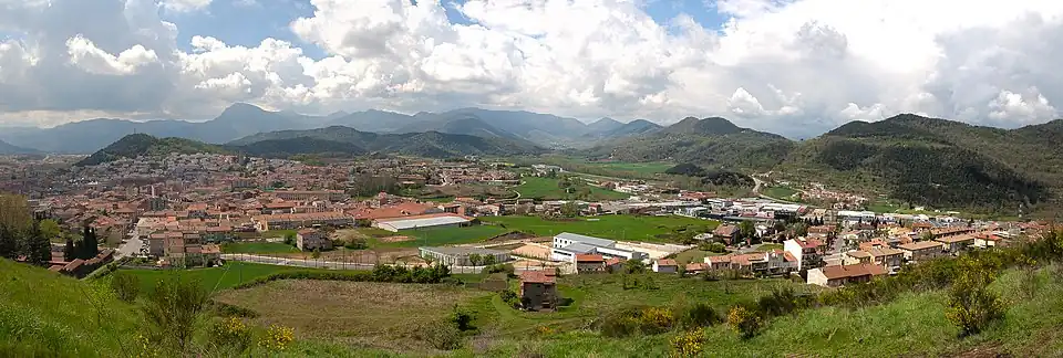 Olot (Catalan: [uˈlɔt] ⓘ; Spanish: [oˈlot] ⓘ) is the capital city of the comarca of Garrotxa, in the Province of Girona, Catalonia, Spain. The city is known for its natural landscape, including four volcanoes scattered around the city center. The municipality is part of the Zona Volcànica de la Garrotxa Natural Park. Olot is also well known for its cultural activity, with historical art movements like Olot school or factories of religious imagery, which contributed to the location in the city of the main Design and Arts & Crafts school of the province of Girona, the Escola d'Art i Superior de Disseny d'Olot.